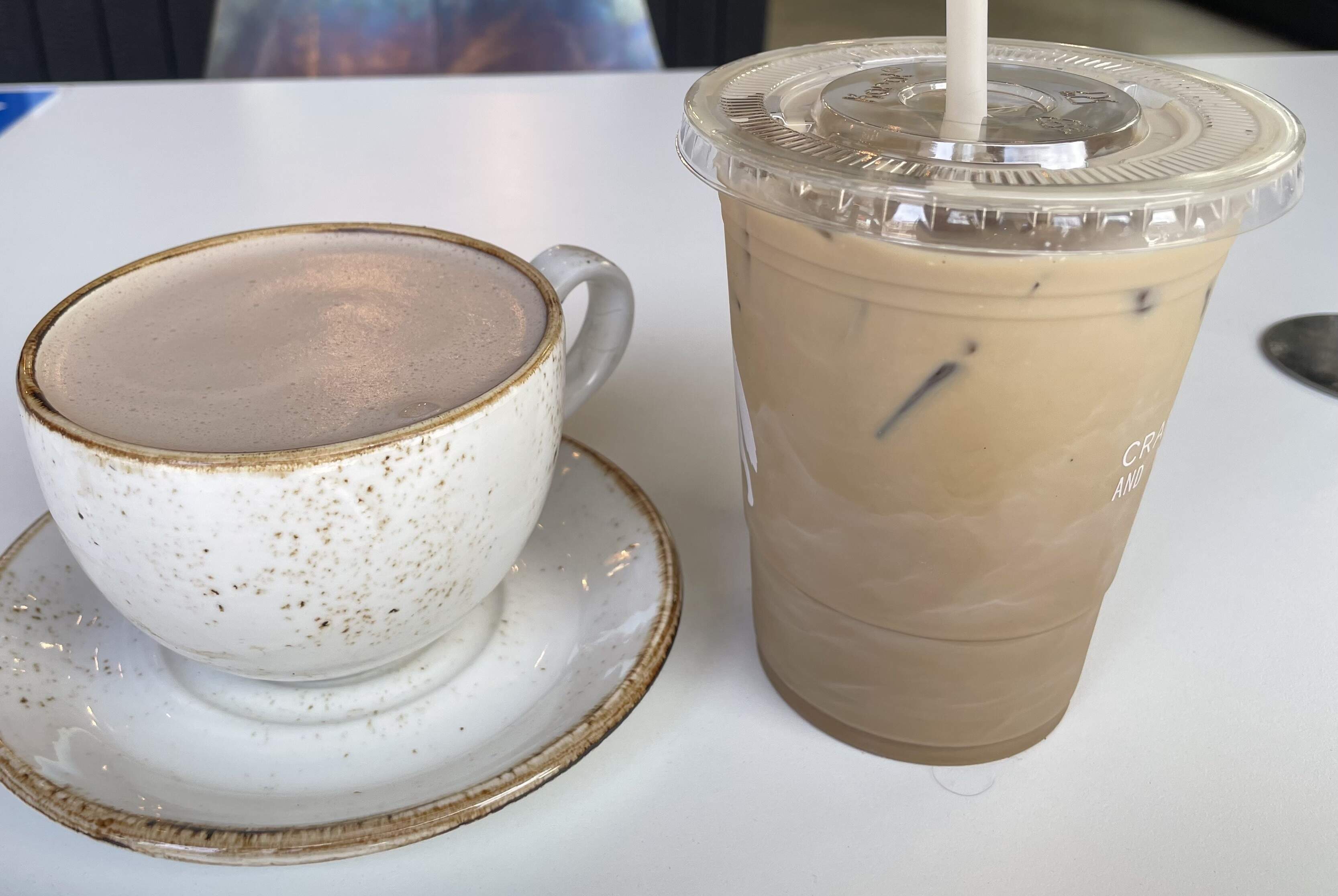 Iced chai latte, hot chocolate