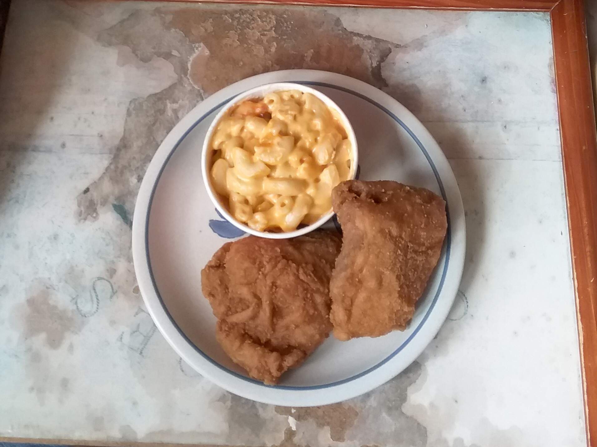 Today’s lunch was fried chicken and mac 'n cheese.