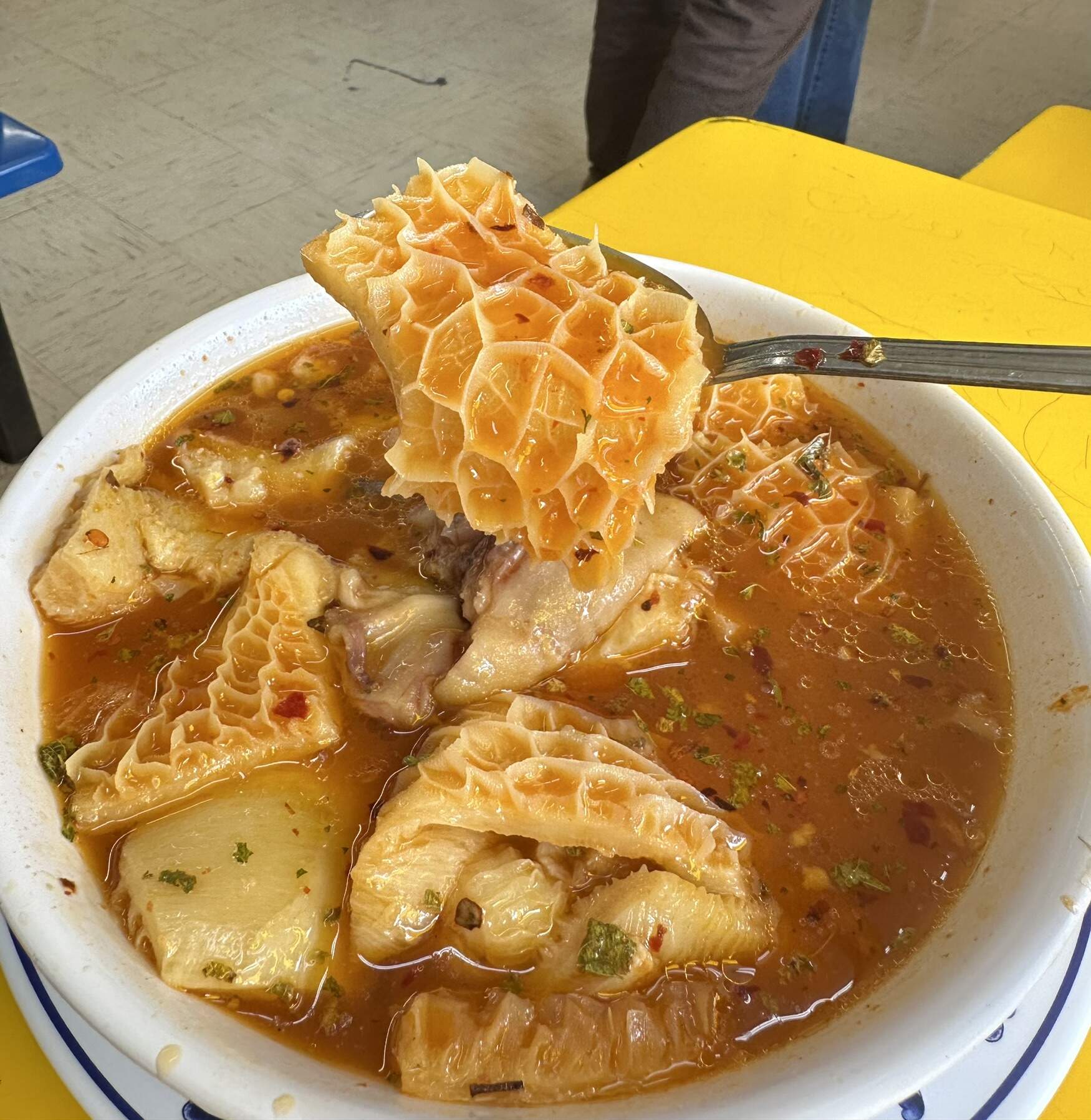 Tripe and Cow’s Feet were fantastic!! Silky Melt-in-Mouth tender. All Meat, no Hominy. Very substantial portion for $14.15.