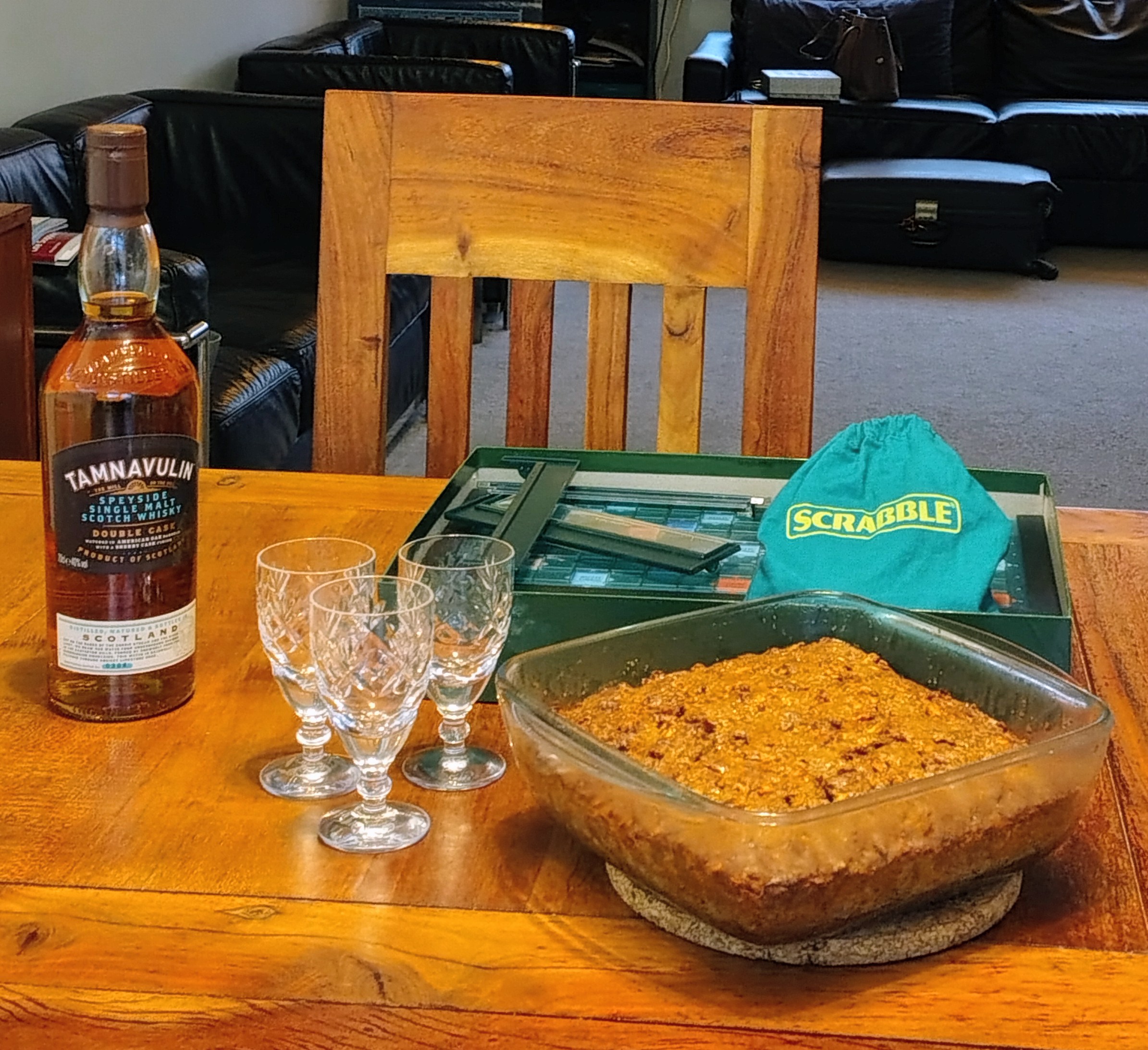 My retired neighbours are coming over for a board game night in a bit. This is my first time hosting such an evening so Iāve got Scrabble, single malt, glasses which arenāt whisky glasses and homemade Dorset apple cake. I think Glynis is bringing cheese scones
