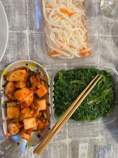 Xmas morning, we all headed down to Westchester County to spend the next few days with my brother and his family. My brother and SIL are both good hosts and cooks. Spatchcocked turkey, roasted salmon, smashed potatoes, Brussels, garlic crostini, grilled kalbi, Korean banchan, danjeong (Korean miso) soup with tofu. Lots of wine and beer. The 3 kids (11 years and under) are having a blast. I love the fun chaos!