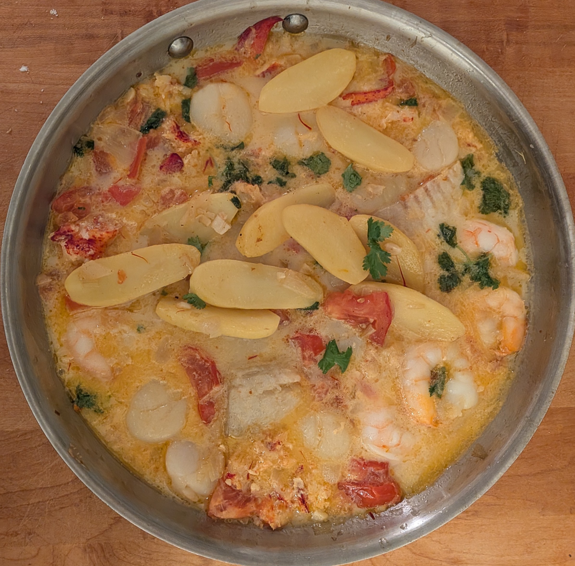 Xmas Eve, I made Mexican Xmas Eve Salad, and an adaptation of Michelle Bernstein’s Chupe de Mariscos, this time with turbot, lobster, shrimp and Digby Scallops. I also served a vanilla raspberry Yule Log from my favorite local indie grocery in London, ON, Remark Market.