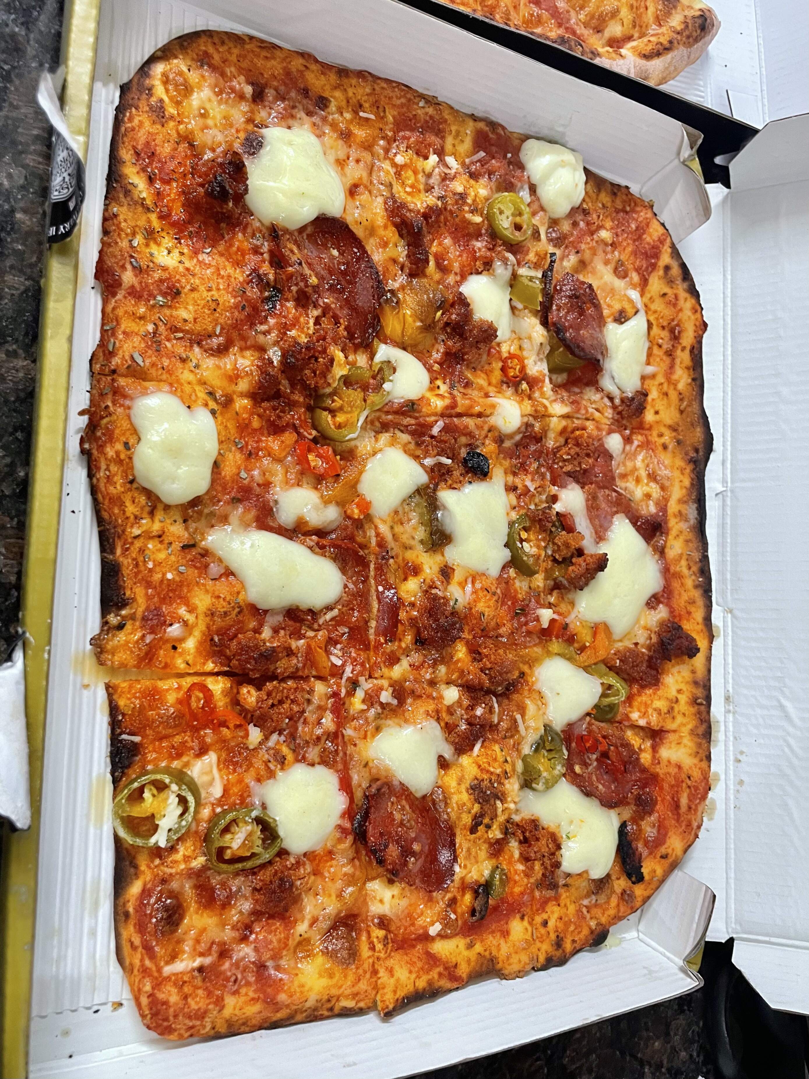 Christmas Dinner was equally untraditional, with somebody craving pizza, and everybody else perking up at the suggestion. So we ordered a couple of margherita pies and a Calabrese sausage pie and everyone was happy.