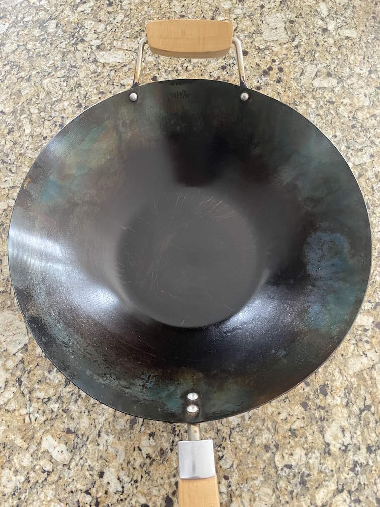 I do a similar thing but a bit simpler. After I cleaned out my wok last time (the blowtorch thing I mentioned above) I never bothered trying to “officially” re-season it. I just threw a layer of oil on it and put it away. And that’s what I do every time now: Pull it out of the cabinet, heat it up, add a tiny bit of new oil and wipe that out (to get rid of the old oil layer and any dust, especially if it’s been a while since I’ve last used it). Then add fresh oil, cook, clean (with dish soap and even scrubbing if necessary), and then back on the stove: high heat until it’s totally dry, usually 2-3 minutes. Then immediately add some oil and spread it around with a paper towel, and that’s it until next time. Three years of that (used on average once every 2-3 weeks):