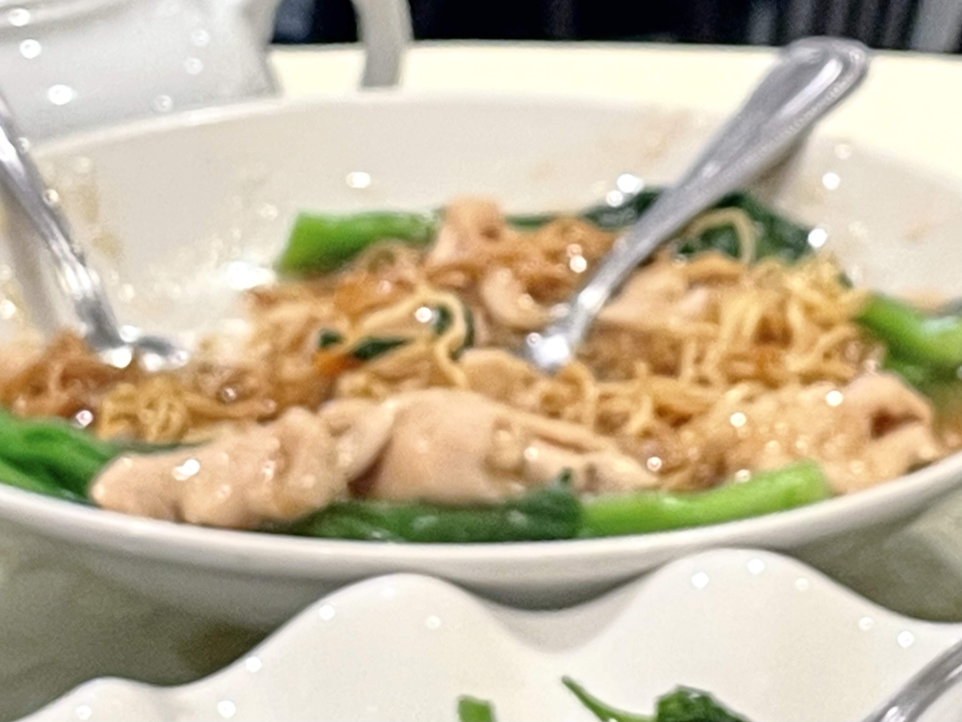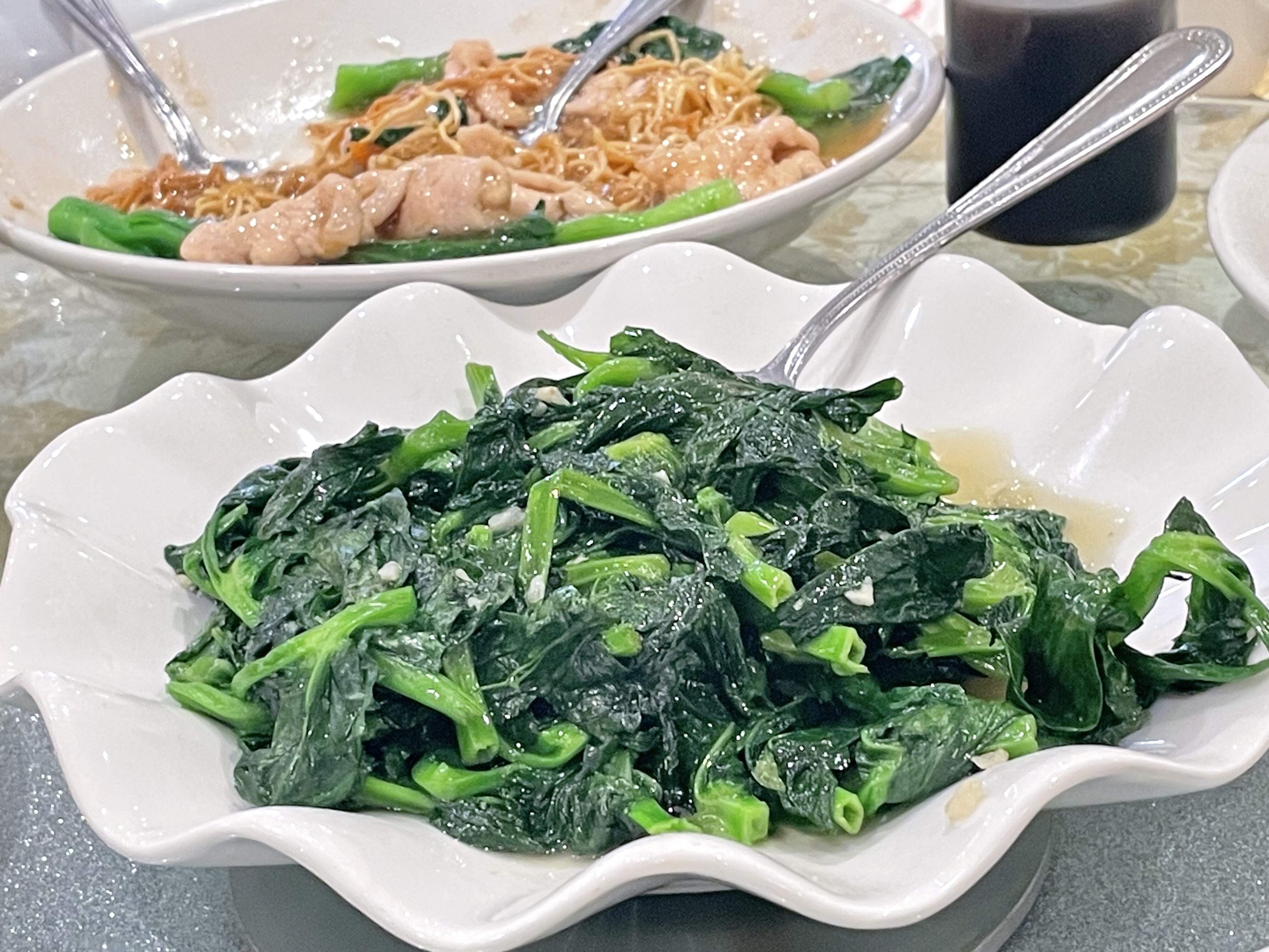 The star of the mains were the salt-baked scallops, salted just enough and with plenty of the crunchy spicy bits that have sometimes been scarce in the past. Snow pea leaves were pretty perfect. Wonton noodle soup starring the excellent namesake wontons was enjoyed by all.