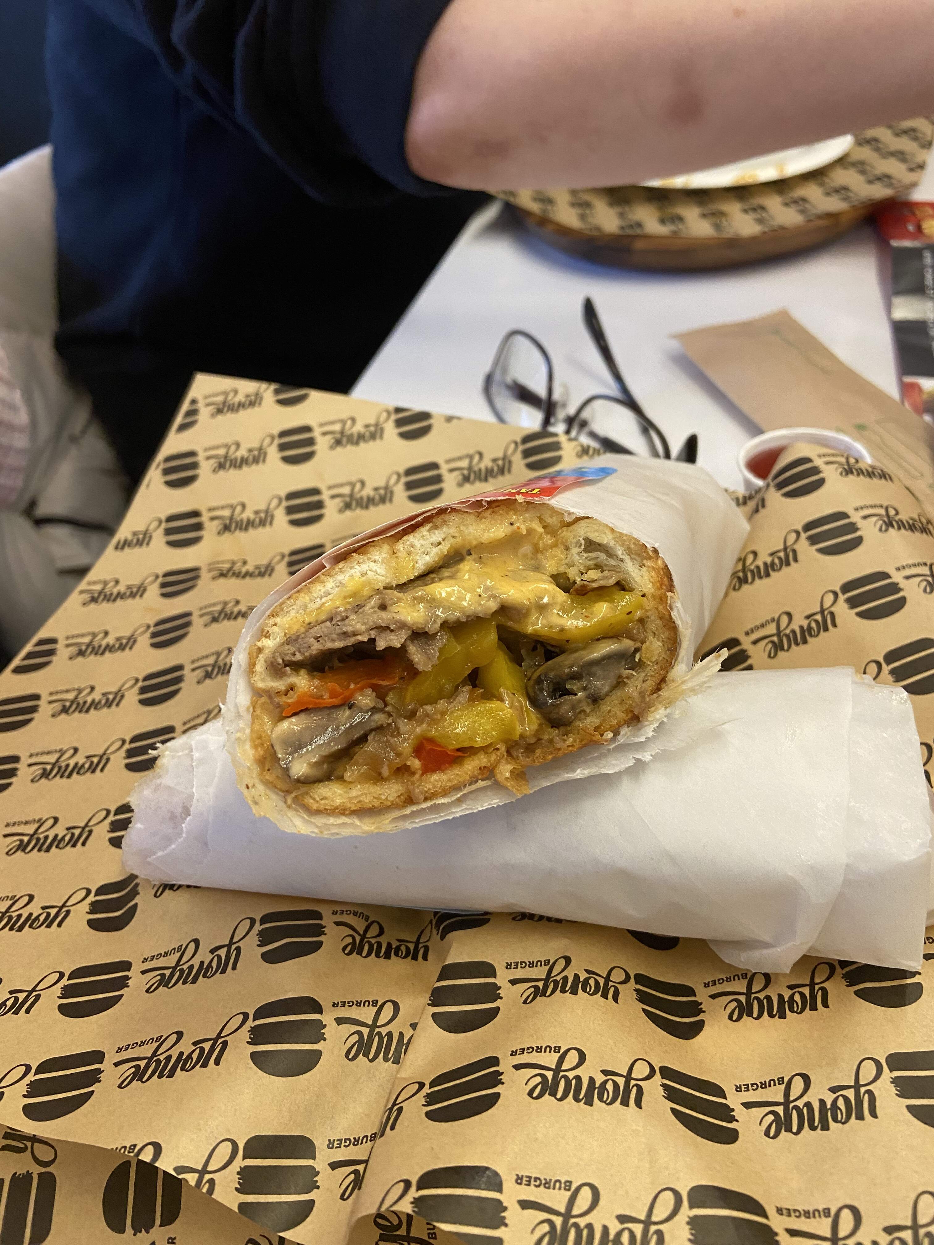 Our order consist of regular burgers with Apple-wood smoked bacon and special house sauce, crunchy and soft sweet potato fries, well constructed Philly Cheese Steak sandwich, healthy lettuce burger wrap and an absolutely delightful Double Chocolate Cheesecake ( Godiva? ).