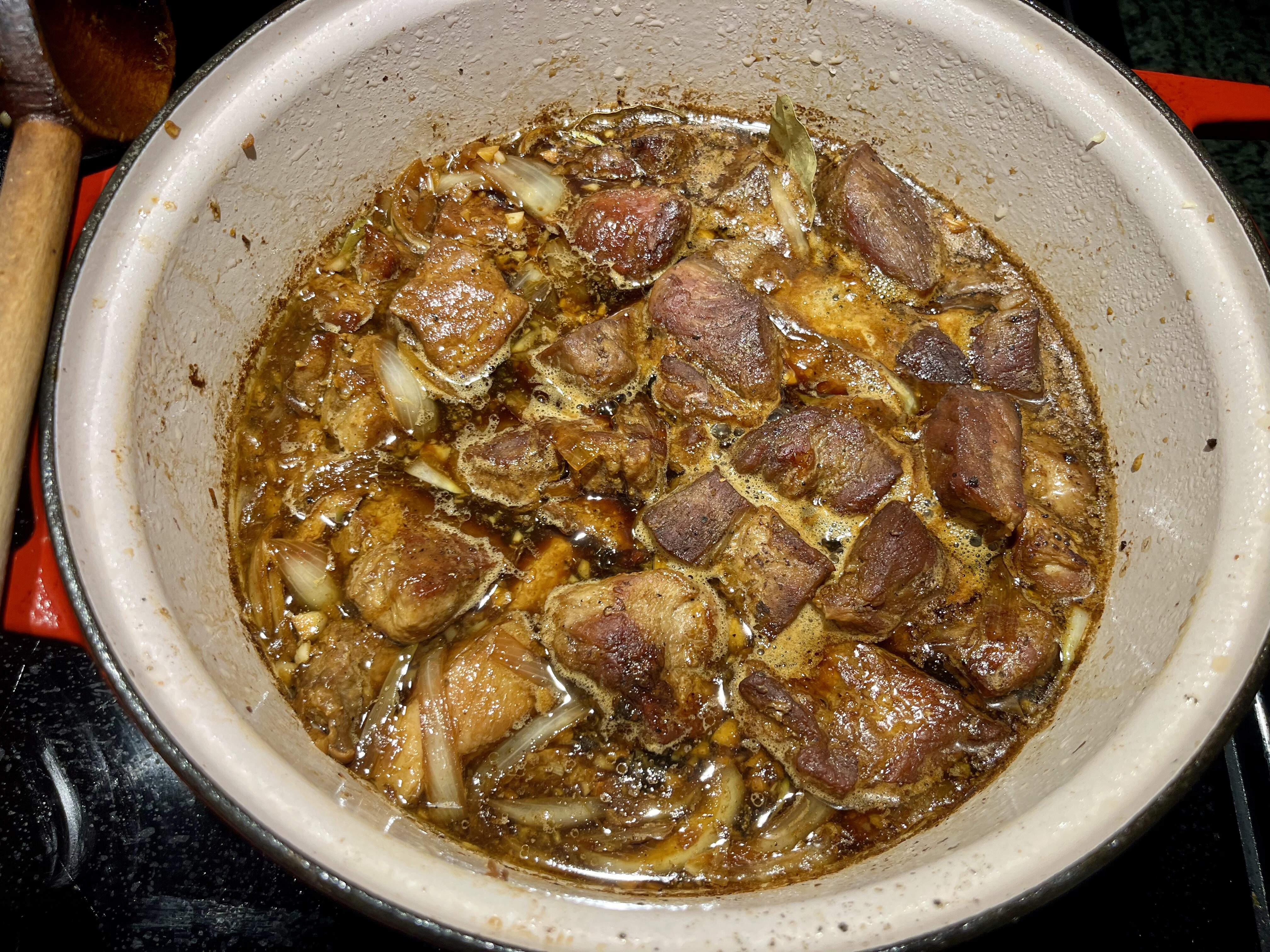 While adobo’s traditionally made with pork belly, I deemed it too fatty & used pork shoulder instead. Smells pretty fucking fantastic IYAM, and it’s not even near done ![]()