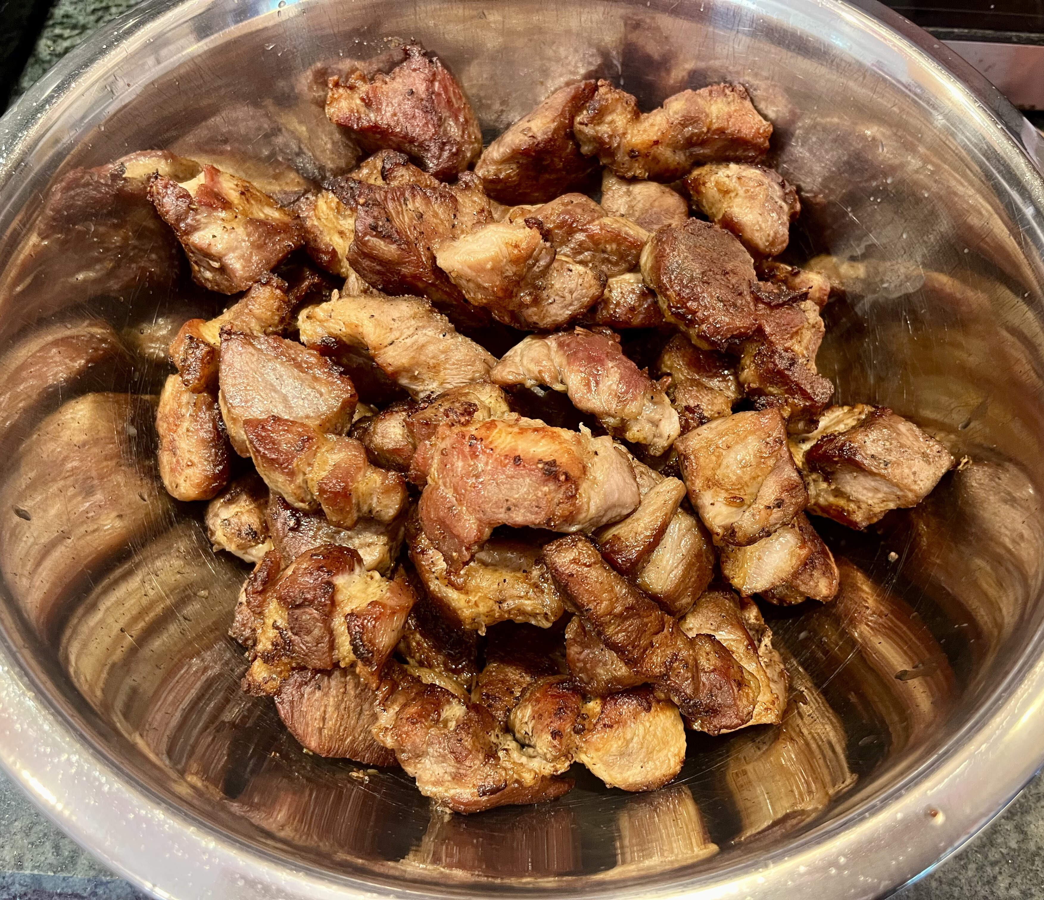 9.5 lbs of pork shoulder seared on all sides, bathed in enough sodium for all of 2026