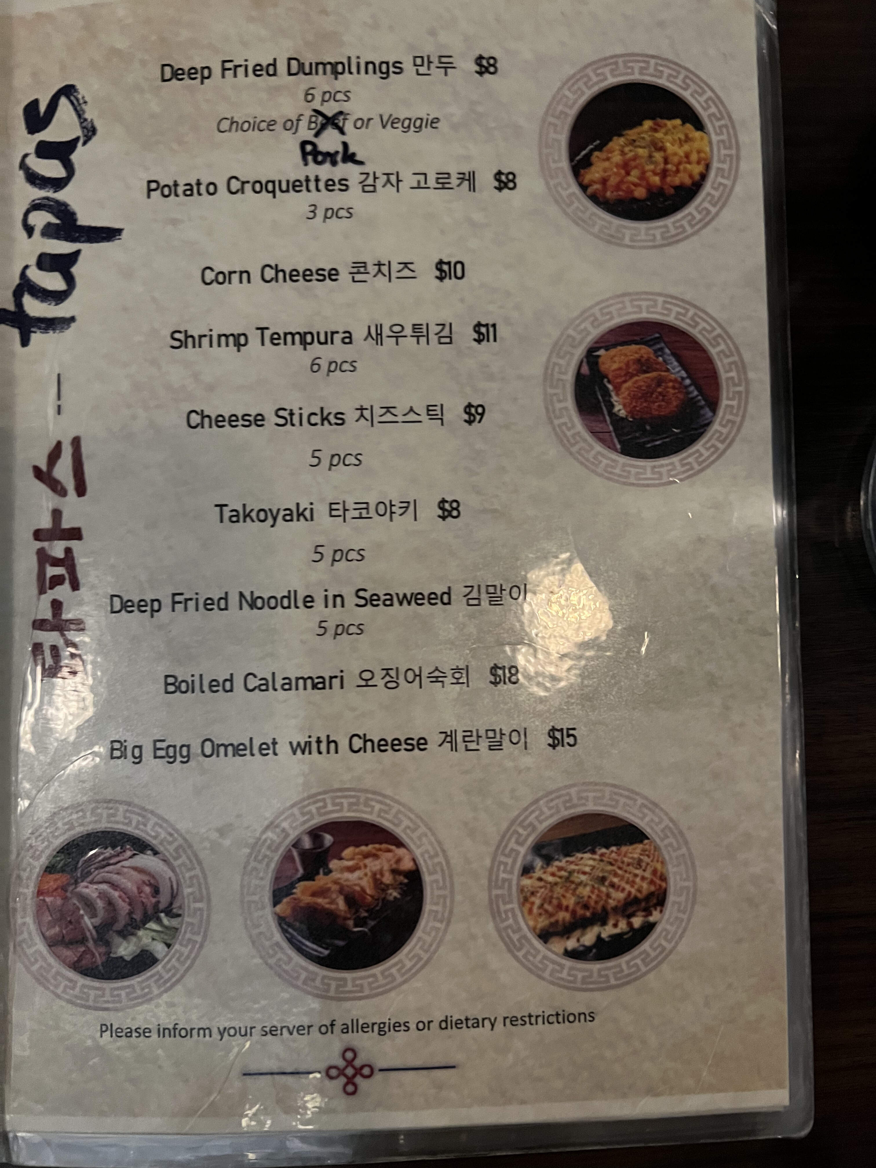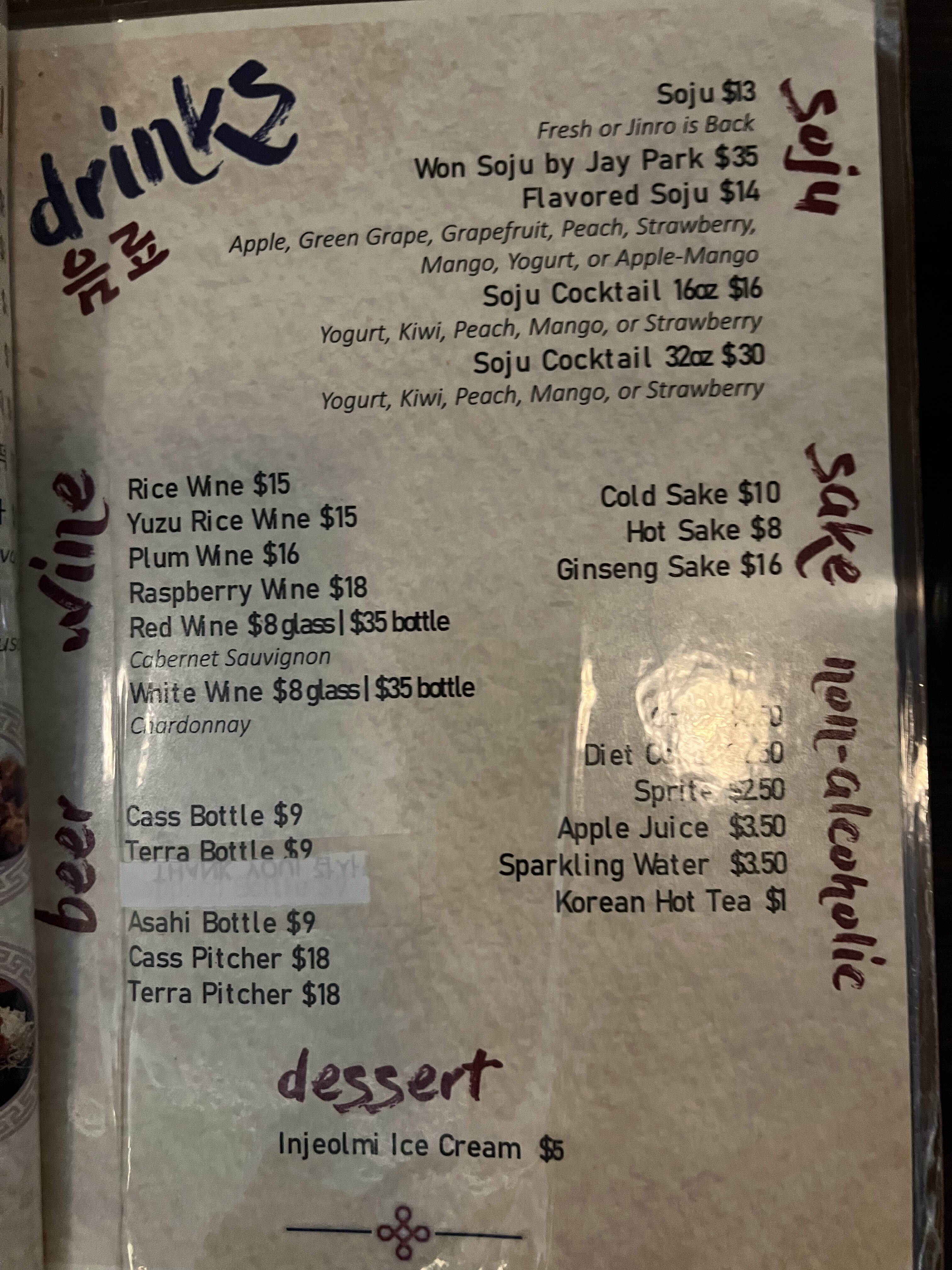 For drinks and K-pop videos, it’s fun, but I prefer Toyose or the places on Telegraph in Oakland for food. Nearby Cocobang has a much shorter menu and better food.